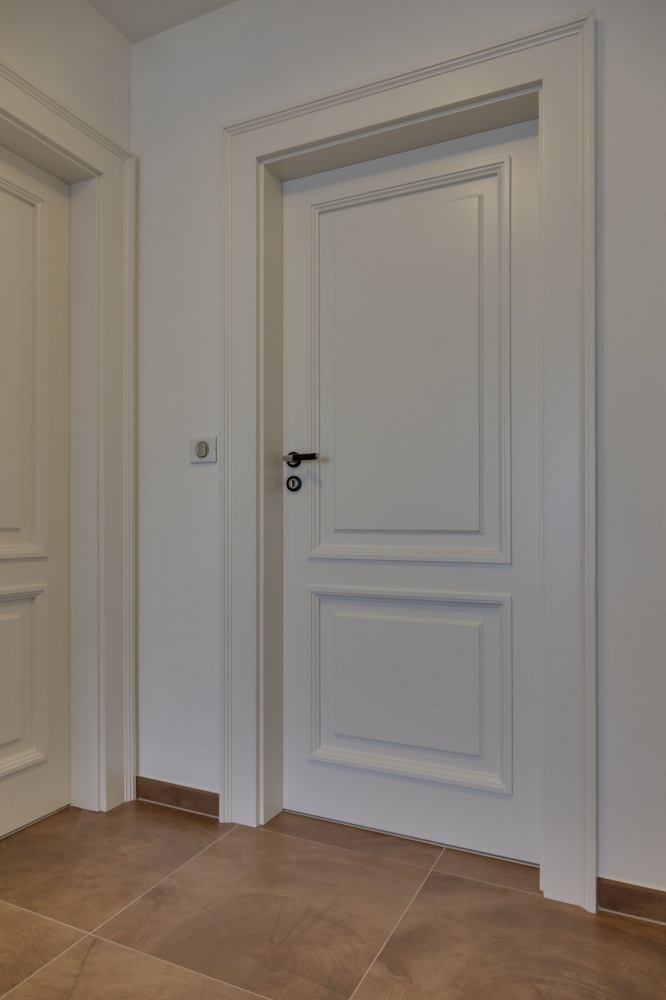 Zastosowanie drzwi lakierowanych na biało bardzo często jest wykorzystane w wykończeniach mieszkań i domów i jak widać na realizacji jest to bardzo dobre i estetyczne rozwiązanie.